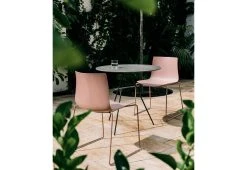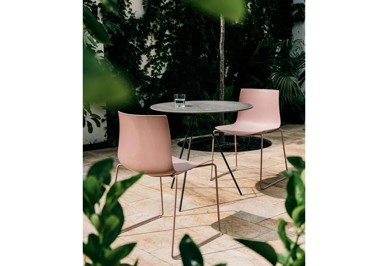 The leaf series by Arper is a contemporary collection of small tables and chairs, perfect for use outdoors. In a sleek matt finish, the tables are elegant and timeless. The chairs have a linear rod pattern evocative of the lines on a leaf. They delicately balance nature and modern materials.