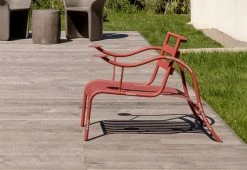 When creating the first chair Morrison hand-sprayed it with a red oxide rust-proofing paint. Once completed the designer thought it looked raw and so added the dimensions in chalk and set them with hairspray.