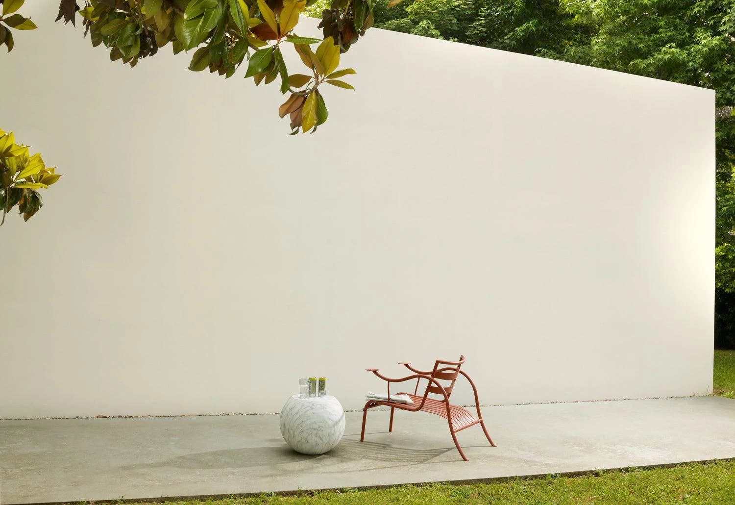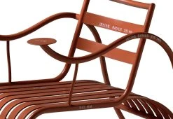 The terracotta version is also available as a special edition, embellished with writing that emphasizes the curvature of the metal structure.