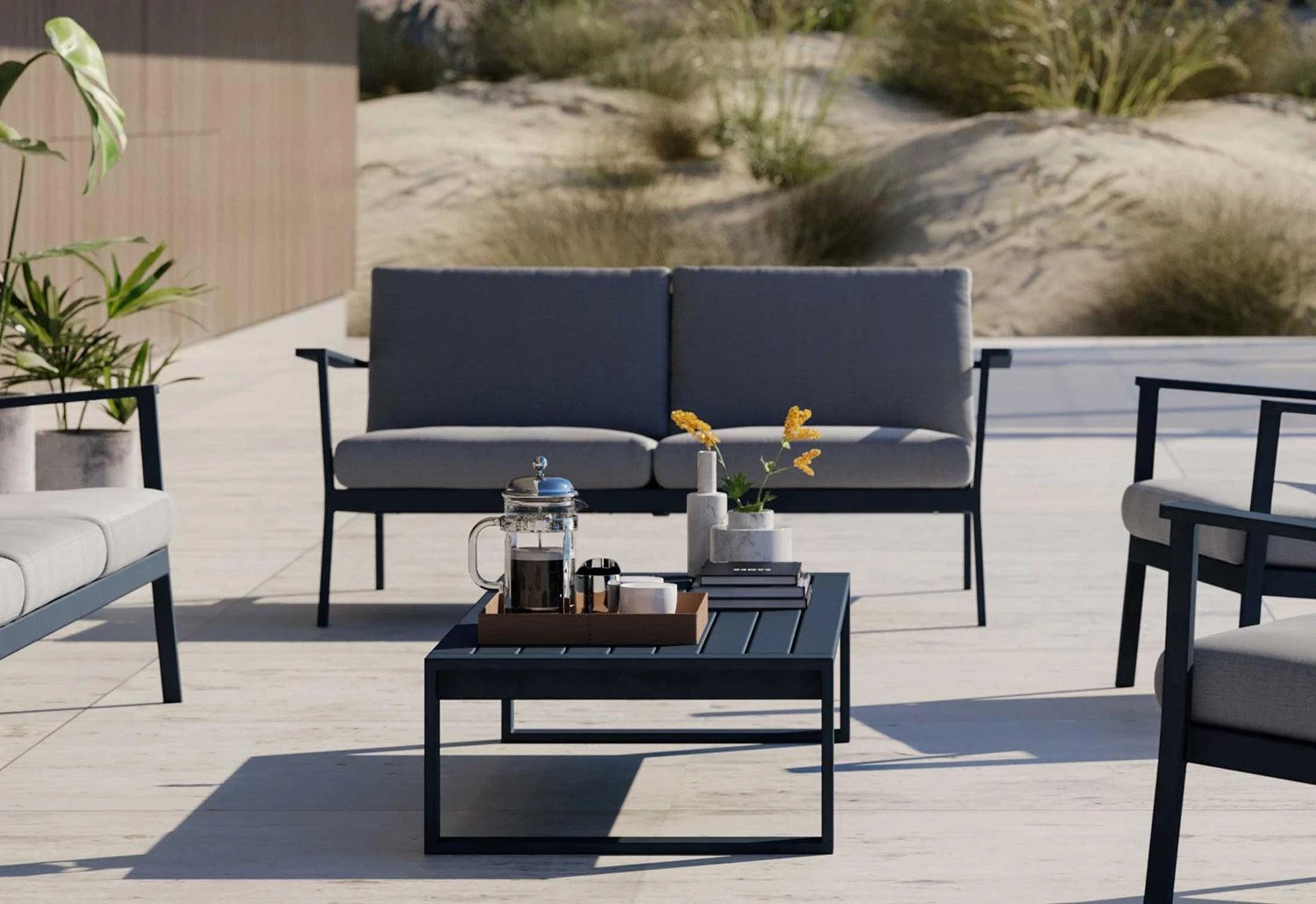 The collection named after the goddess of dawn and bearer of light in Greek mythology, Eos is a classic and well-proportioned outdoor living collection. The Eos dining series is robust yet light with durable properties suited for alfresco dining and lounging during the long summer days.