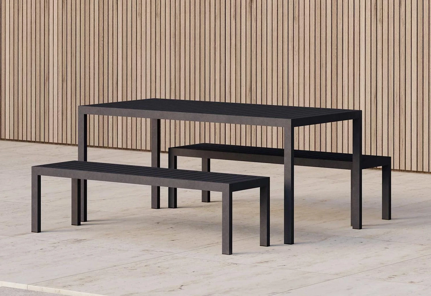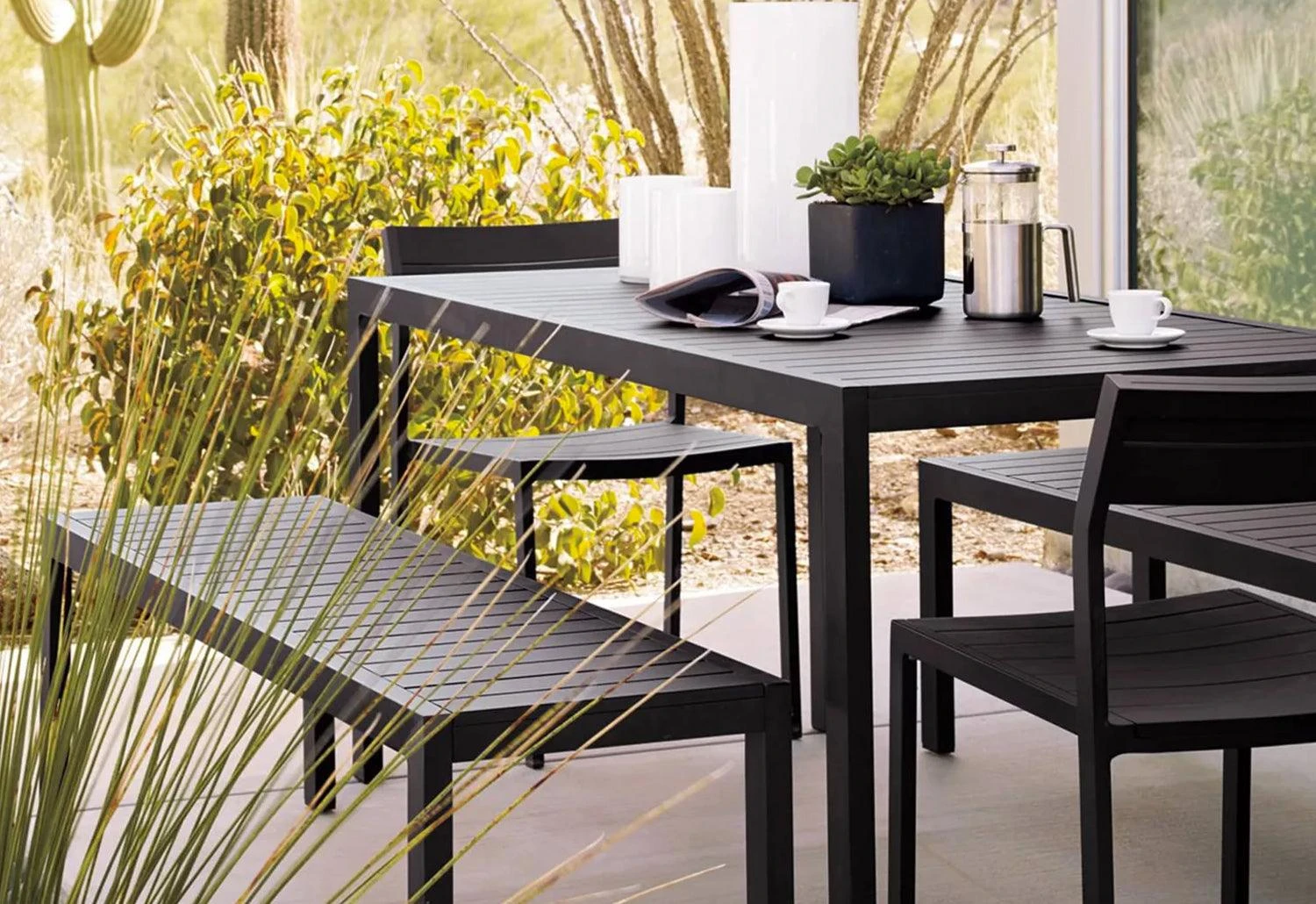 The outdoor bench is made to complement the Eos rectangular or square tables. Suitable for commercial or residential use.
