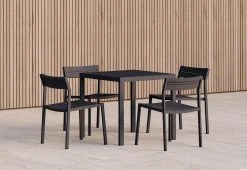 The outdoor dining tables are built to complement the Eos dining chairs. The benches fit snug beneath the rectangular version and both sizes can be placed alongside one another to increase seating. Suitable for commercial or residential use.