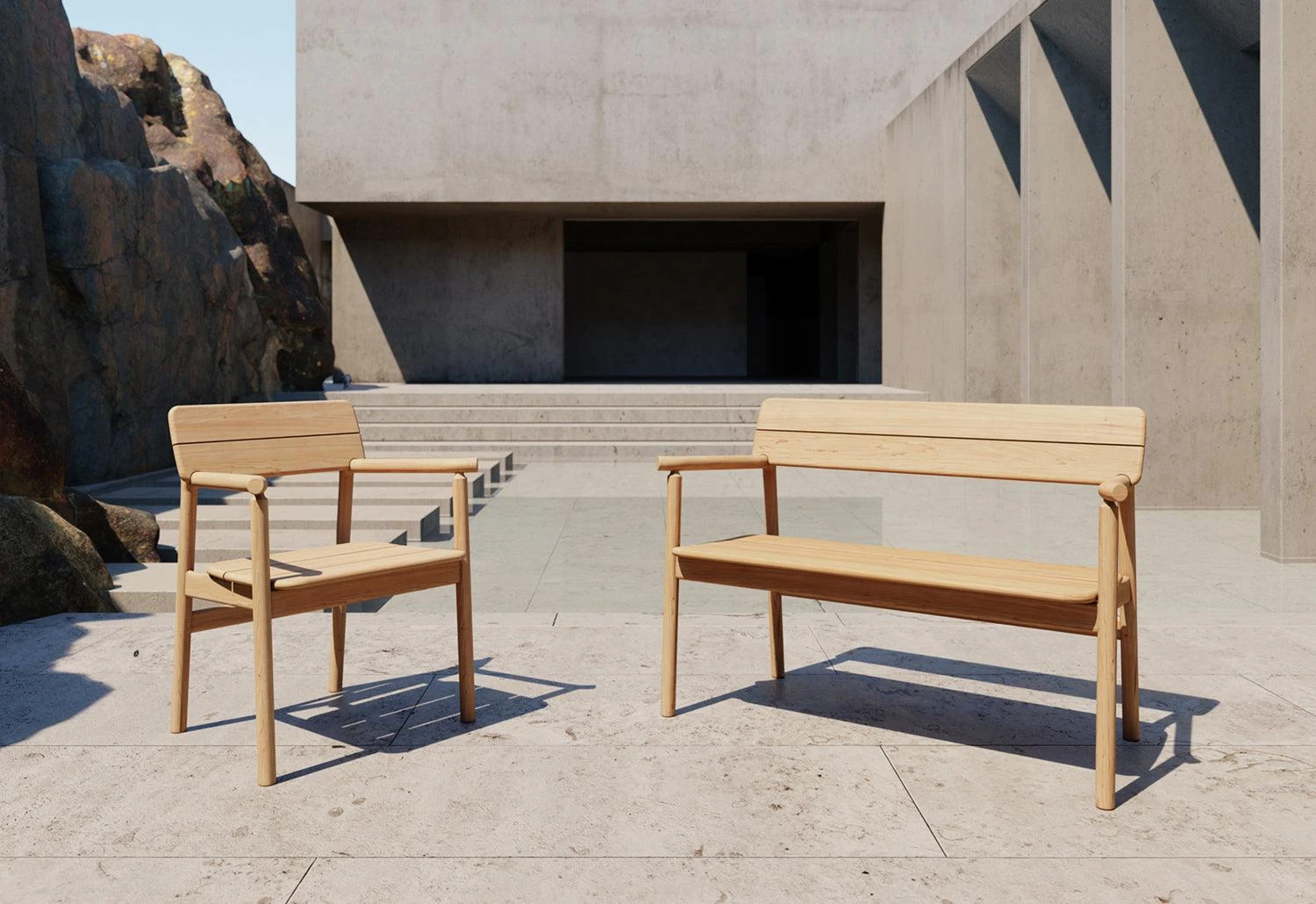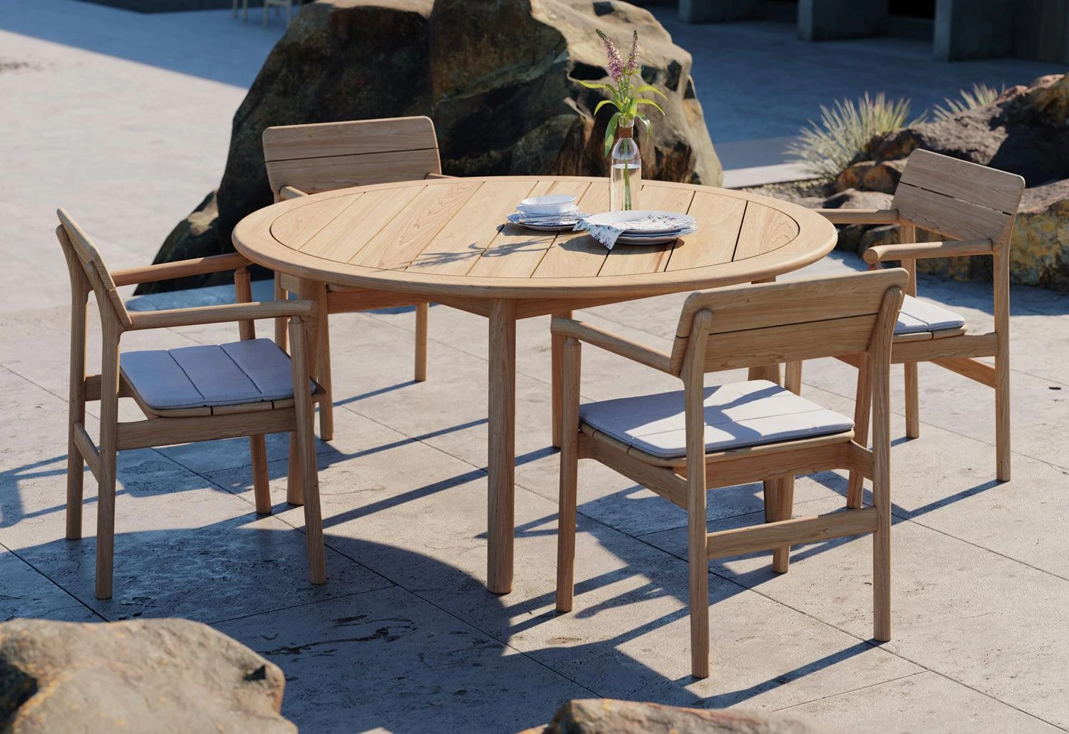 Elevate your outdoor area with the teak Tanso outdoor dining range designed by David Irwin, inspired by the simplicity of Japanese design.