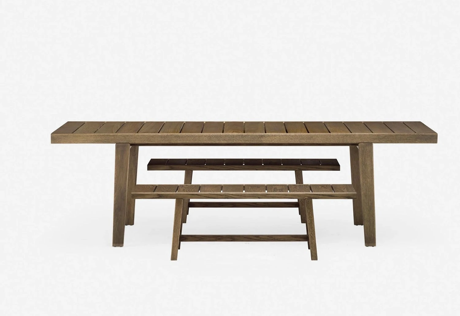 The collection includes solid wood tables, chairs and a bench, all with a beautifully minimal and modest aesthetic. A fully versatile range, suitable for any outdoor space.