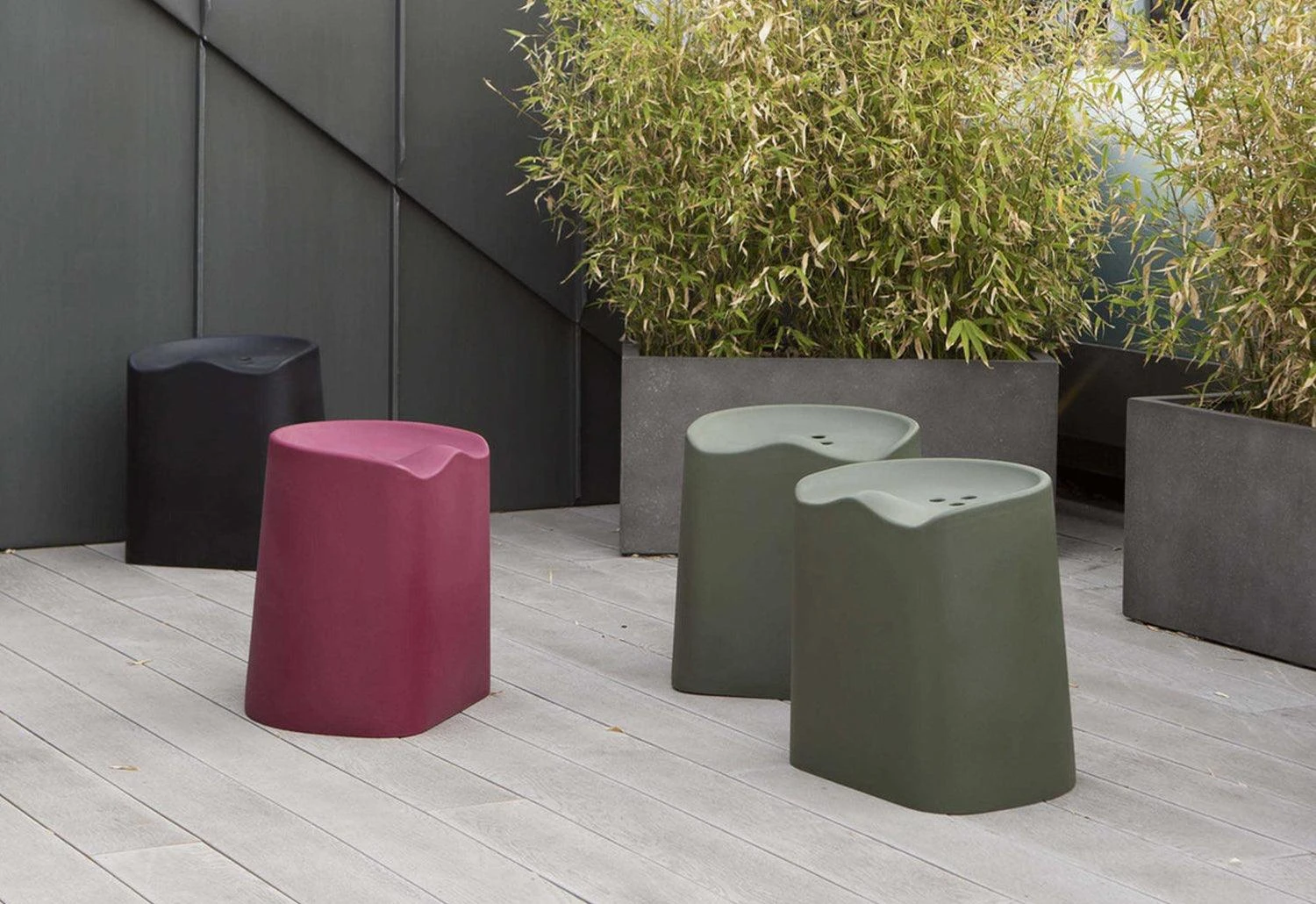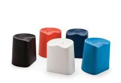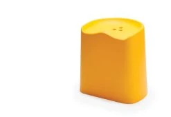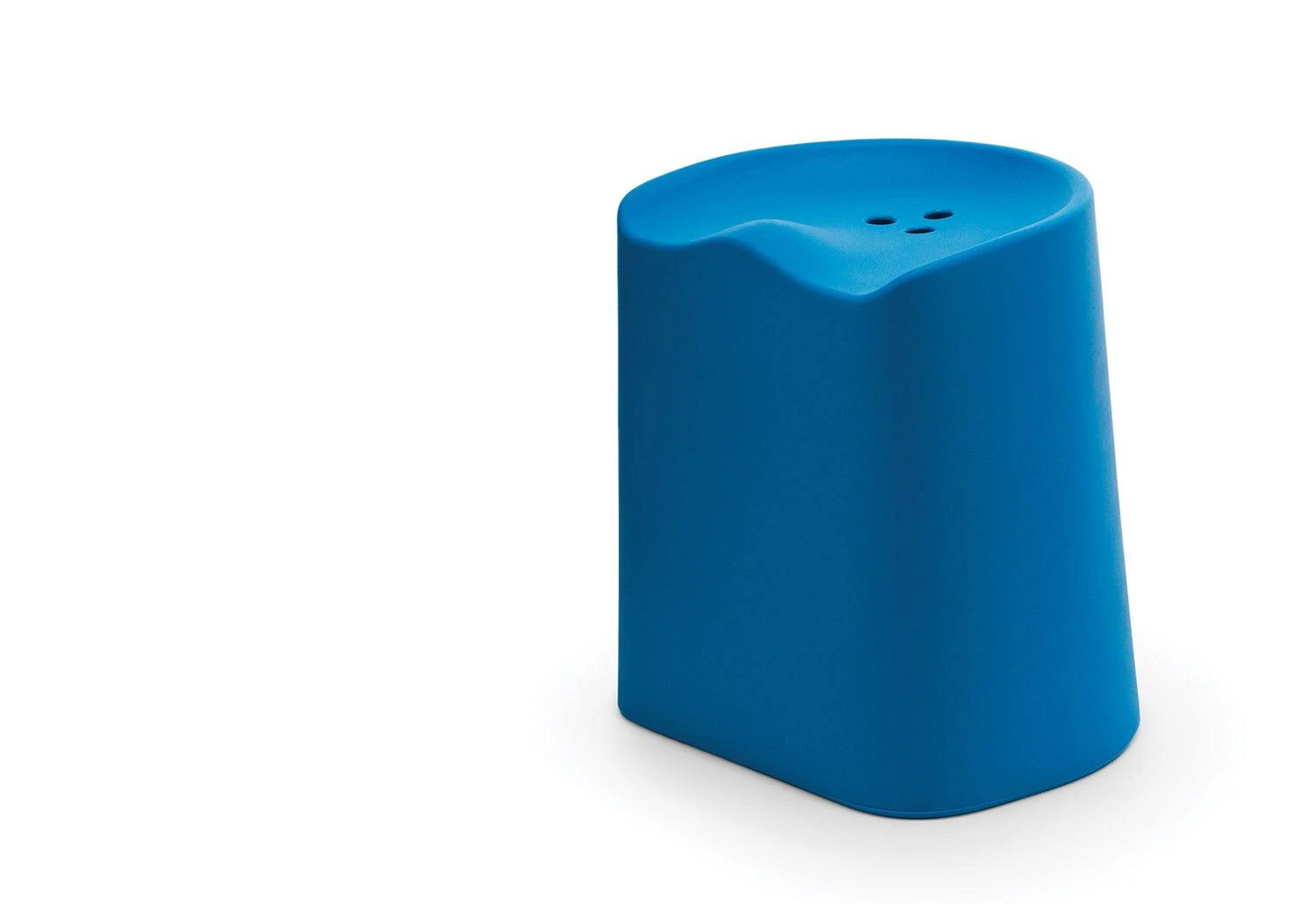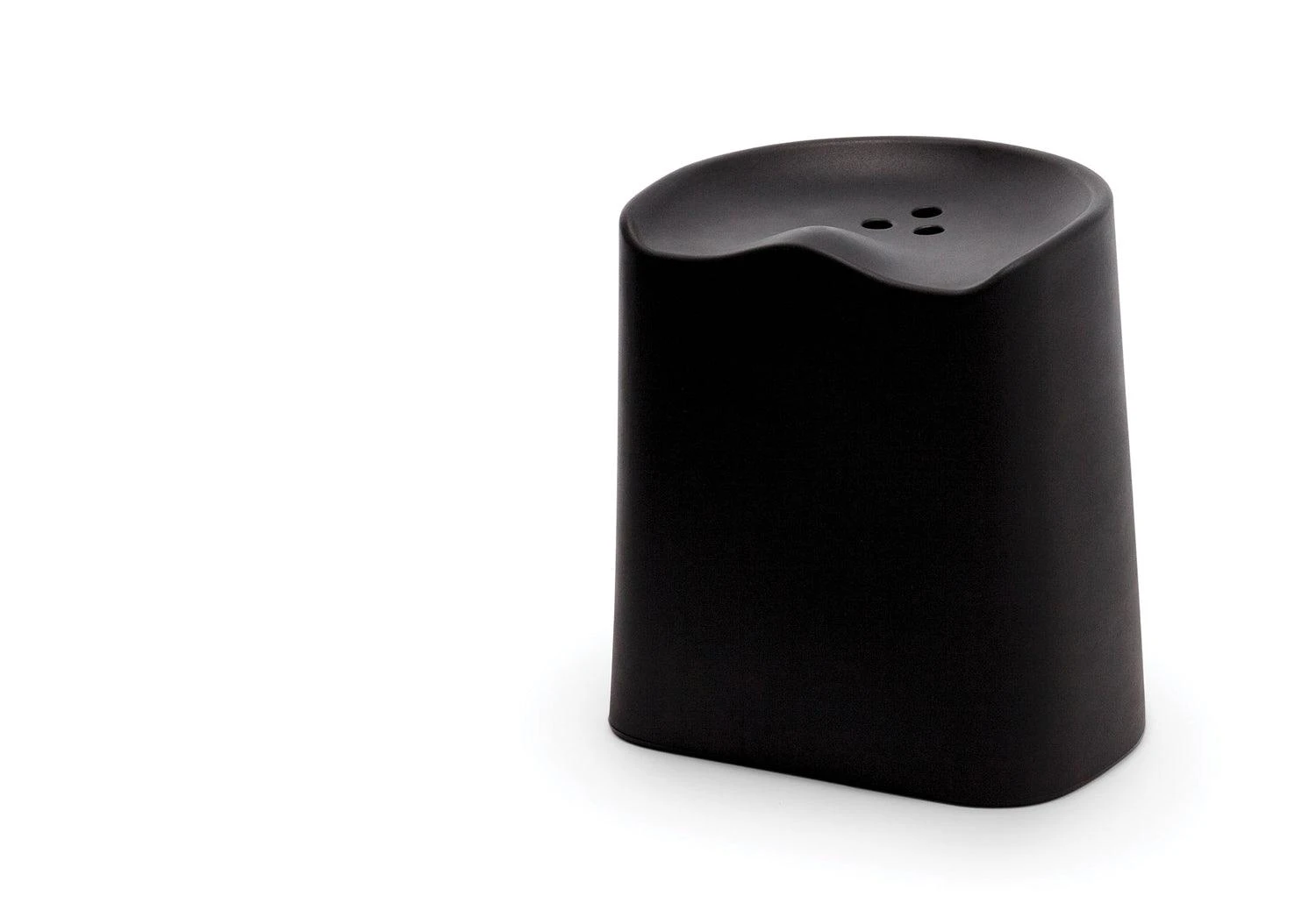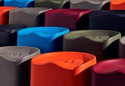 Versatile, comfortable and economical, this stackable plastic stool is a hard-working piece of furniture. The Butt stool’s ergonomic top borrows its form from a generic tractor seat. Within this are drilled three holes, with which to lift the piece.