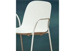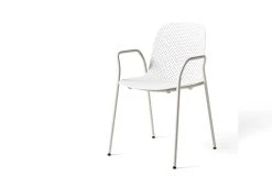 The 13Eighty chair derives its name from the number of holes in its moulded polypropylene shell. Suited to both indoor and outdoor use, these perforations are designed to allow rainwater to drain away when the chair is used outdoors.