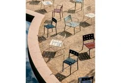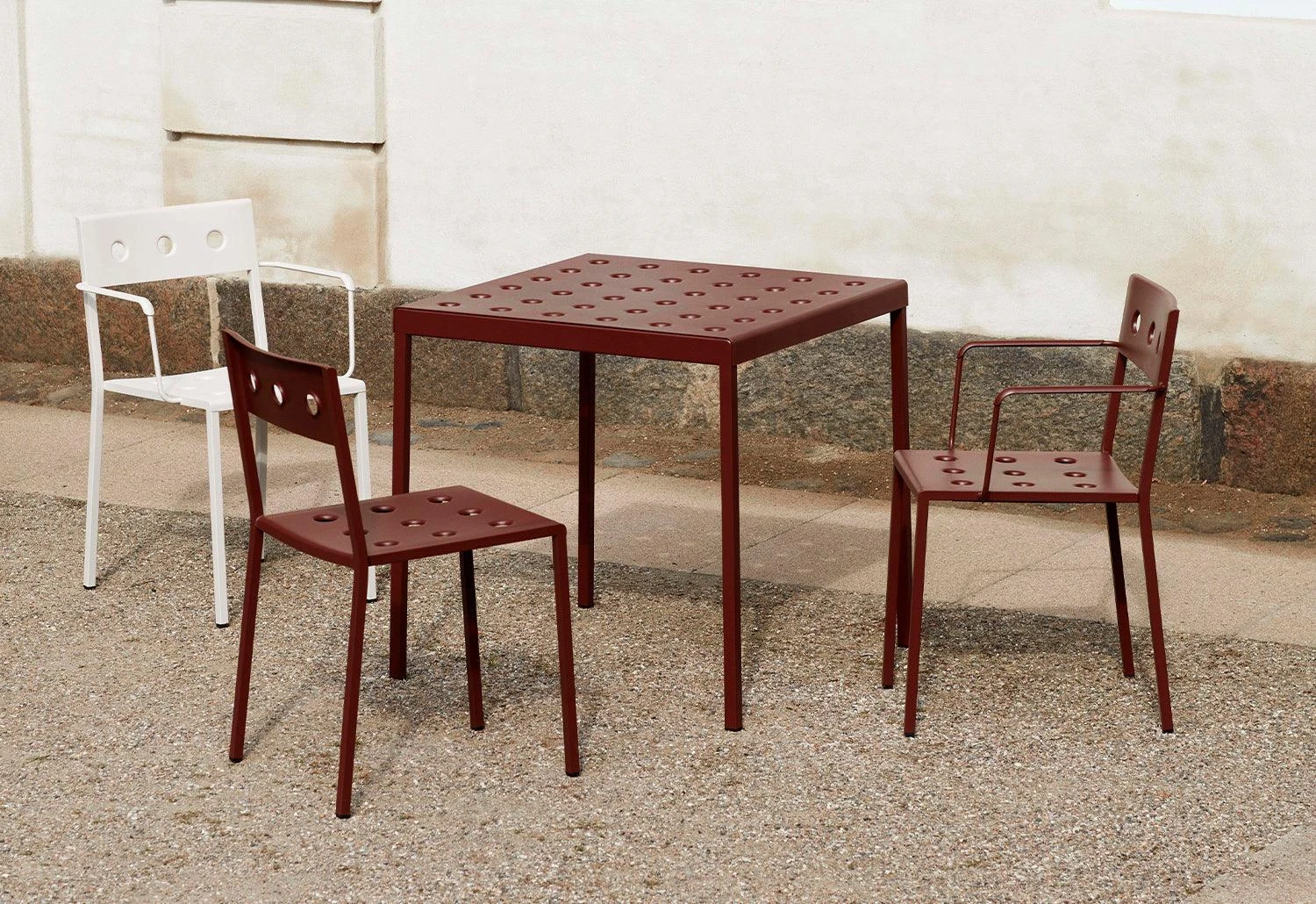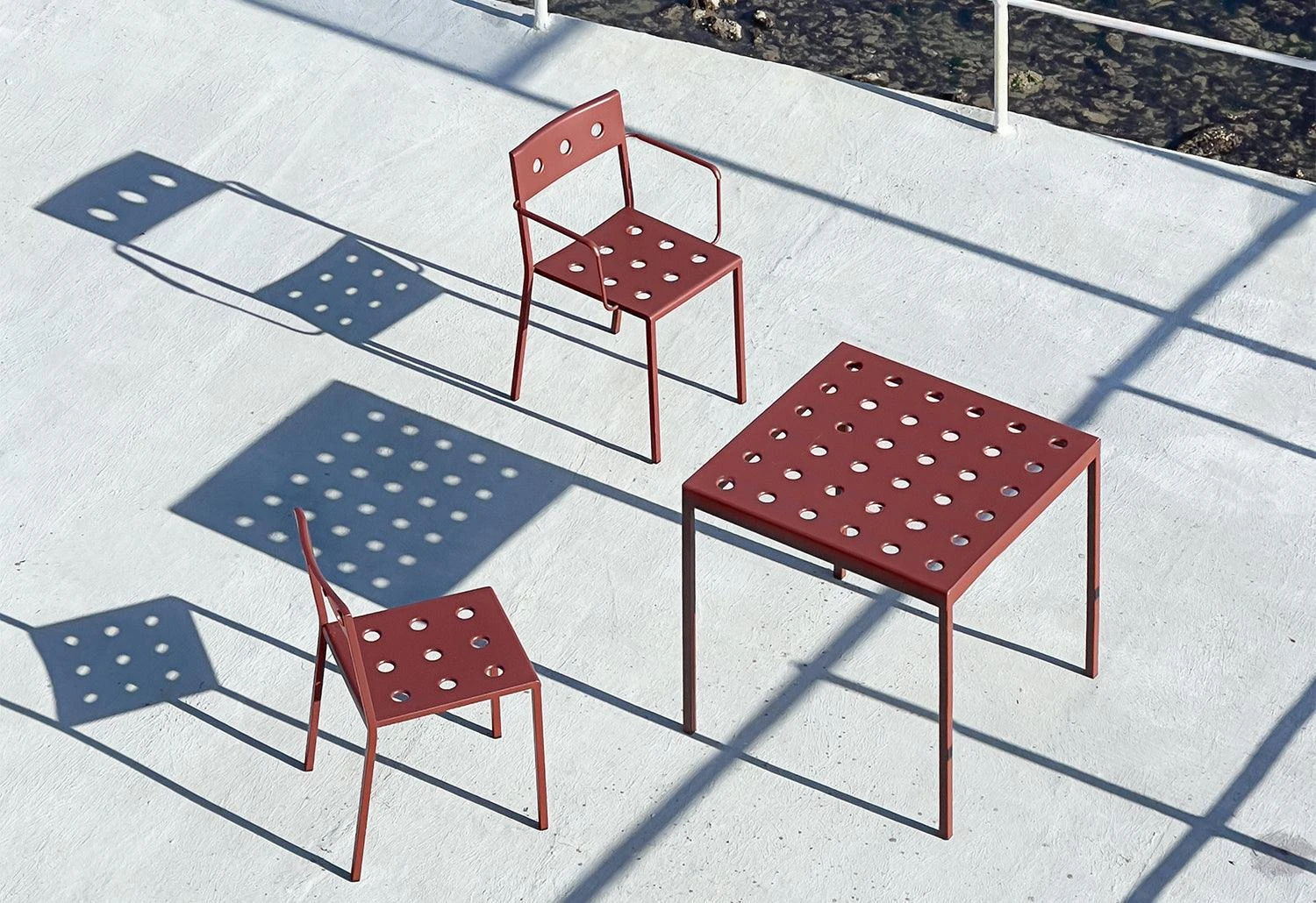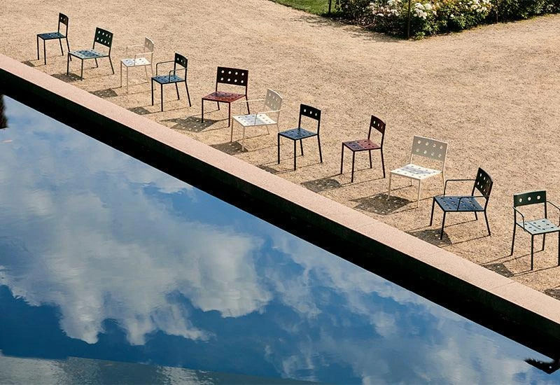 An elegant new outdoor furniture collection from HAY comprising of side chairs, armchairs, lounge chairs, tables and benches, the Balcony collection stands out with its unique symmetrical holes incorporated into the design. With minimal welding made possible by the presence of the symmetrical holes which provide extra stability, the collection is aesthetically soft on the eye without compromising with strength or comfort.