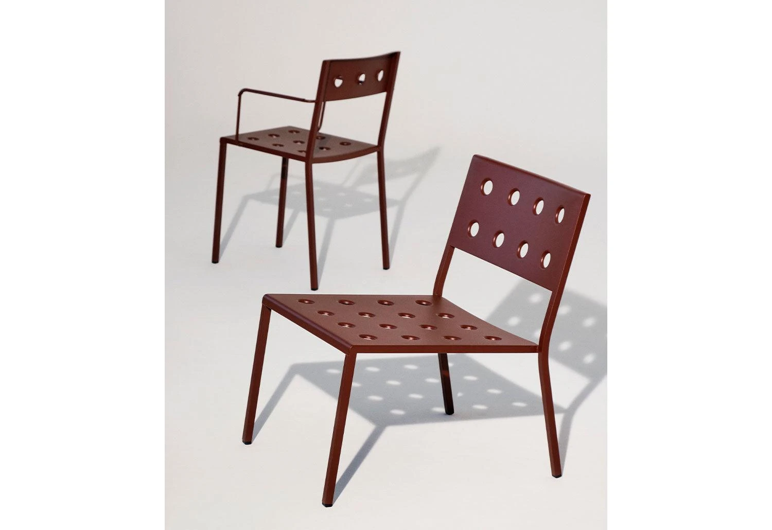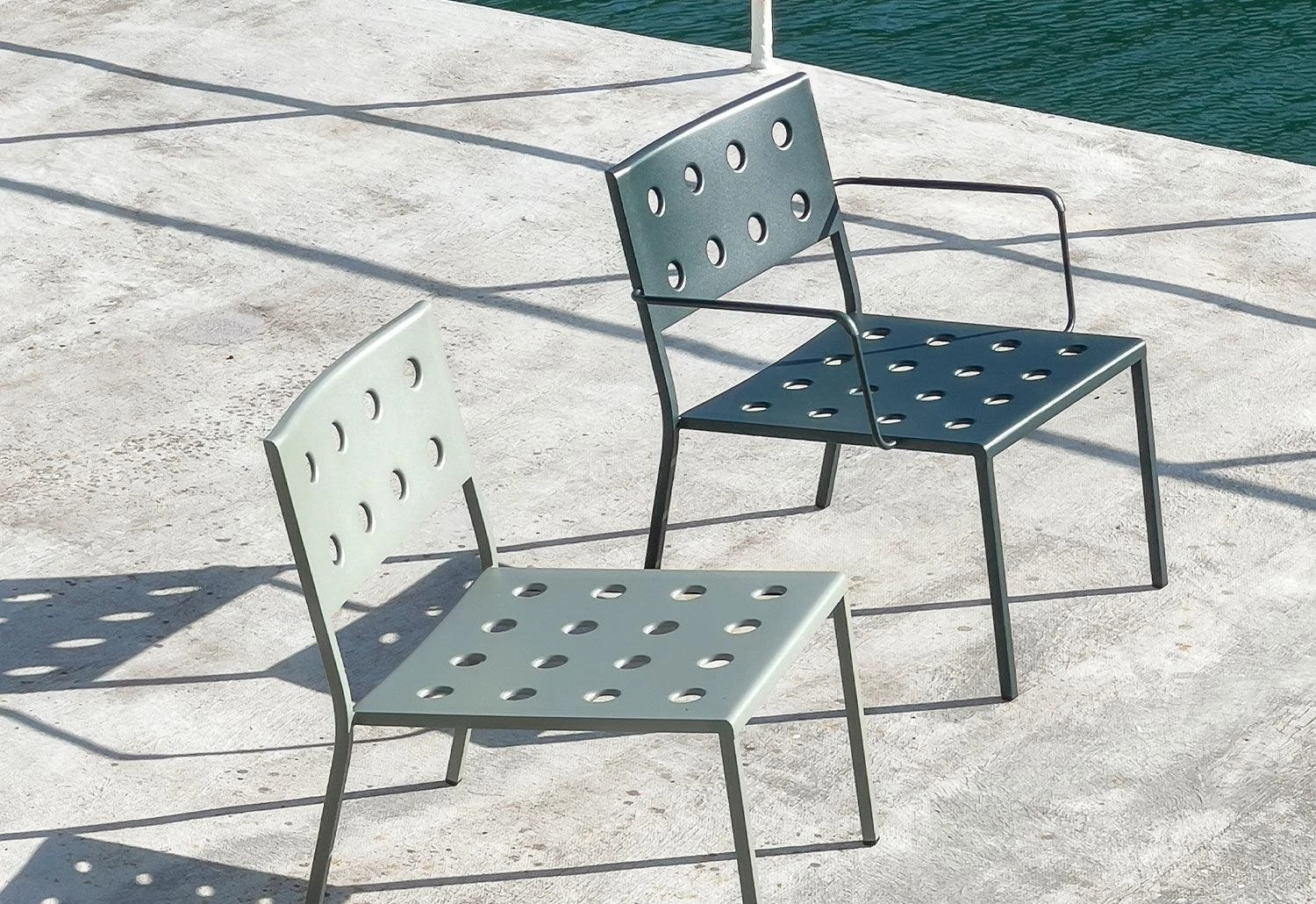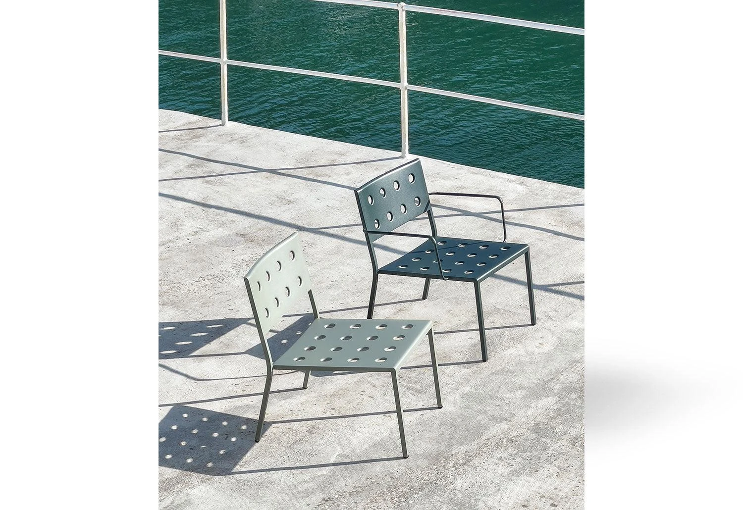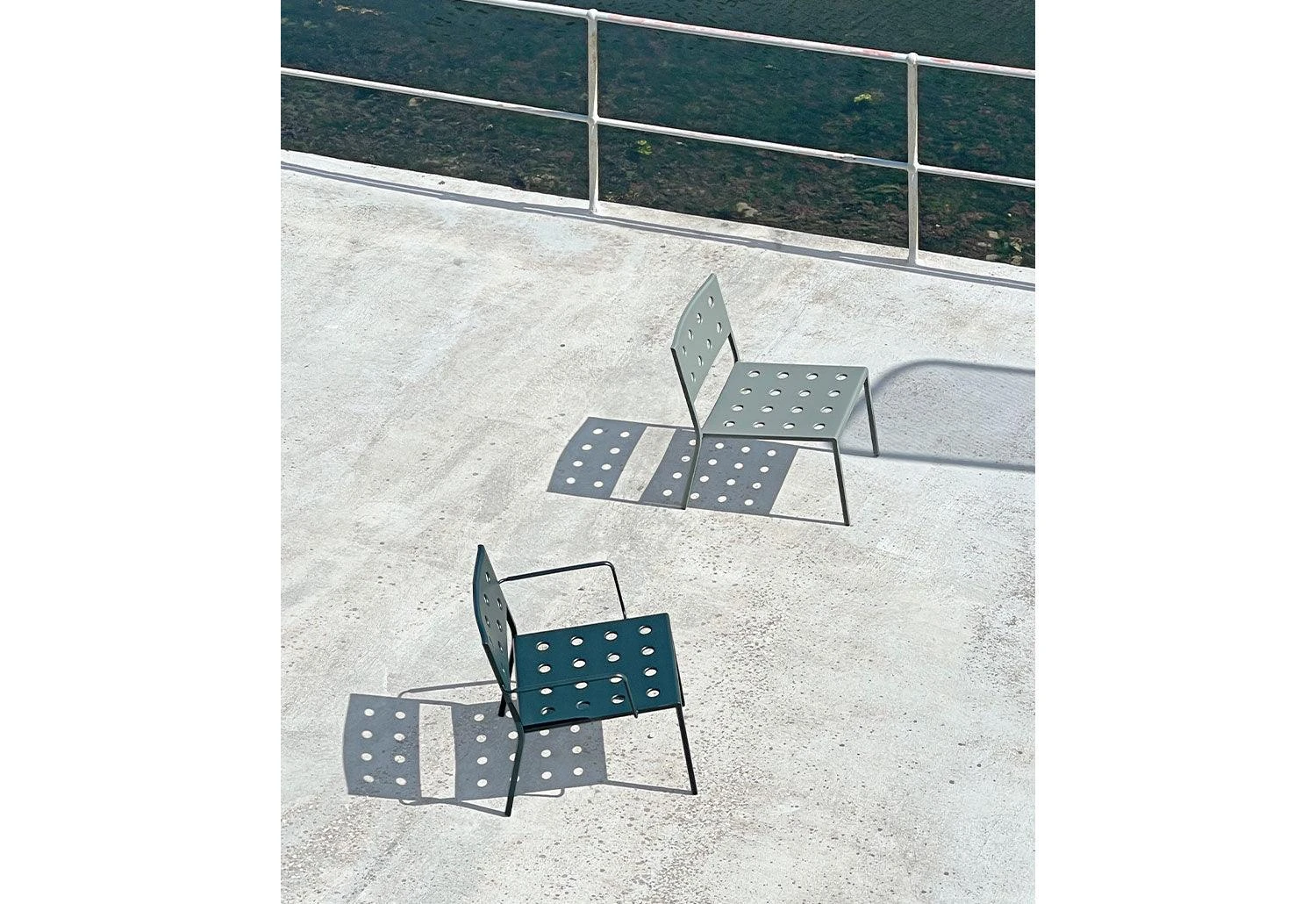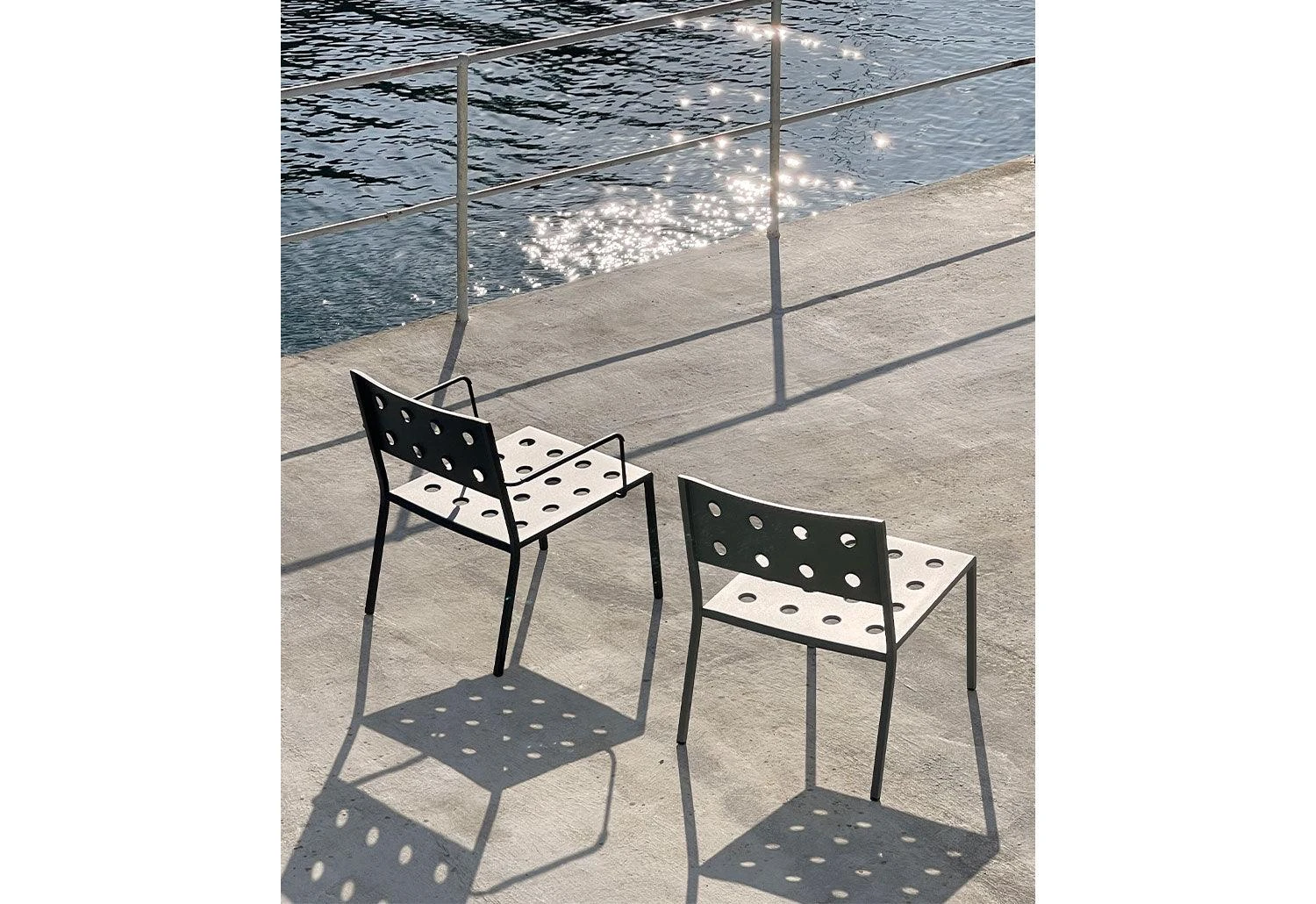 An elegant new outdoor furniture collection from HAY comprising of side chairs, armchairs, lounge chairs, tables and benches, the Balcony collection stands out with its unique symmetrical holes incorporated into the design. With minimal welding made possible by the presence of the symmetrical holes which provide extra stability, the collection is aesthetically soft on the eye without compromising with strength or comfort.