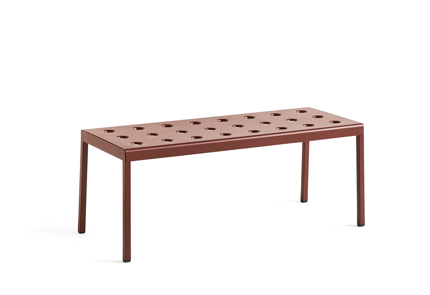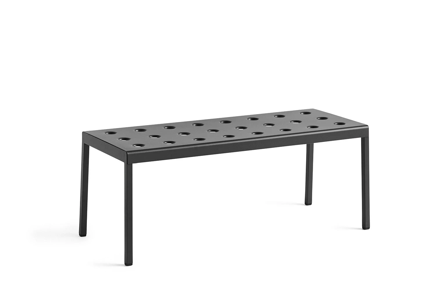 The Balcony Low Table is the perfect addition to any outdoor space. Its sturdy square or rectangular shape is enhanced with unique holes on the surface, which not only add to its visual appeal but also add strength to the construction.