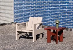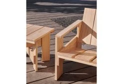 Discover the timeless design of the Crate Collection, first created in 1934 by the renowned Dutch architect and designer Gerrit Rietveld. The collection features modern and functional furniture crafted from surplus wooden crates, including a lounge chair, dining chair, low table, and side table. The simple, well-designed pieces are made of solid pine and finished with a water-based coating, making them ideal for indoor and outdoor spaces, from cafes to private gardens.