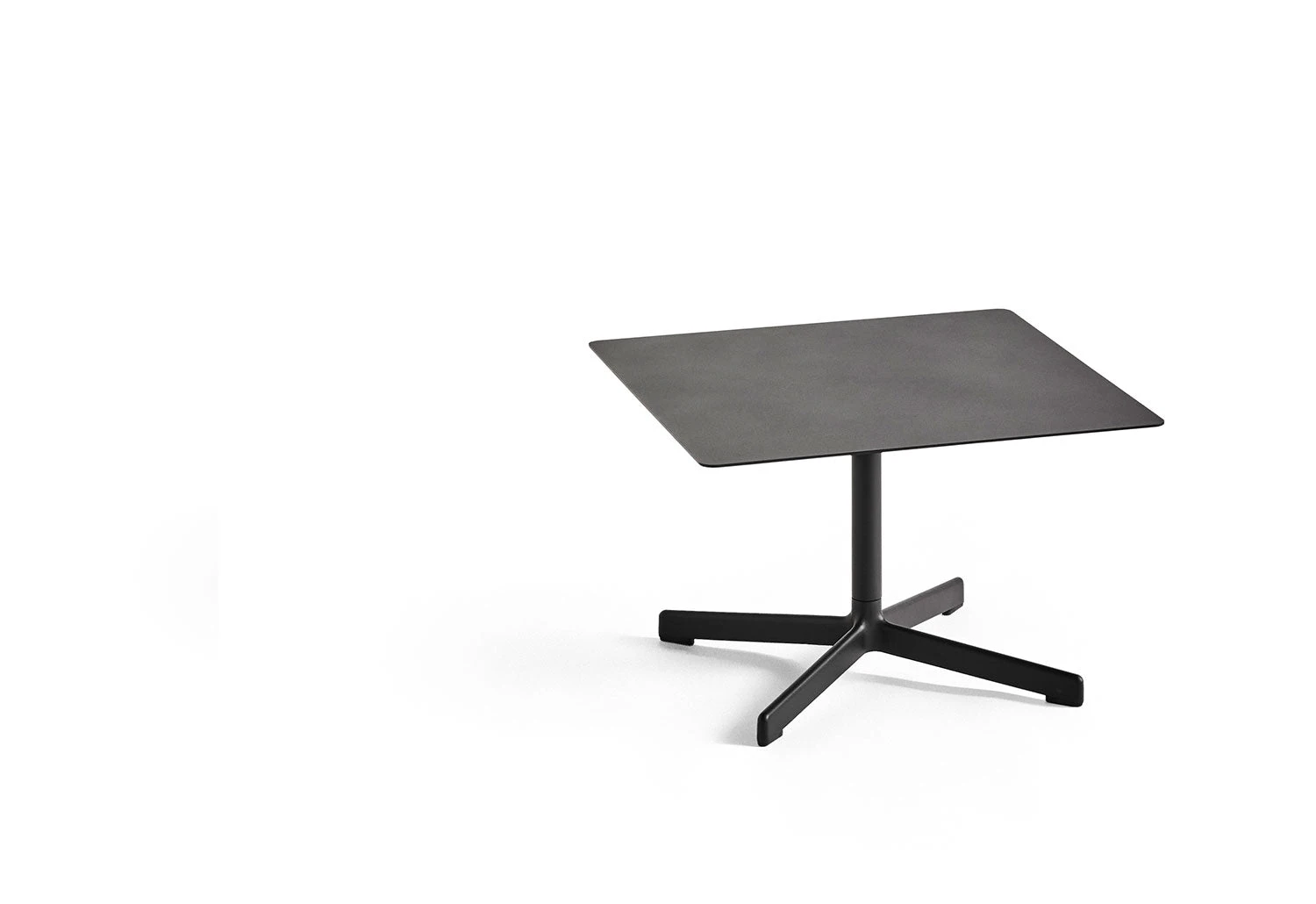 Crafted from durable powder-coated steel and cast aluminium, the Neu Low Table boasts orderly lines and a contemporary, refined expression, making it ideal for indoor and outdoor use. Available with either a small round or square tabletop, the versatile table is connected to a tubular central pole and angled 4-star pedestal base.