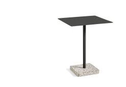 A simple and striking outdoor table with a terrazzo plinth base. The functional and minimal lines of the tabletop are counterpointed by a colourful terrazzo base which – in addition to its striking appearance – has excellent durability and frost-resistance.