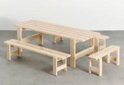 The Hannes & Fritz Weekday Collection is the perfect solution for outdoor gatherings. Born from a need for seating at a dinner party, this collection of tables and benches is both stylish and sturdy. With a design reminiscent of a classic picnic setup, the Weekday Collection invites you to share a meal with friends and family. The solid pine construction gives the furniture a strong and welcoming character, making it suitable for use in a variety of indoor and outdoor settings, including cafes, public spaces, private gardens, and shared outdoor areas.