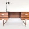 The cabinets and drawer sets were produced with an Agbar carcass and a selection of different veneered fronts could be specified. The simple cut-out drawer-pull and turned leg create a restrained modernist aesthetic.