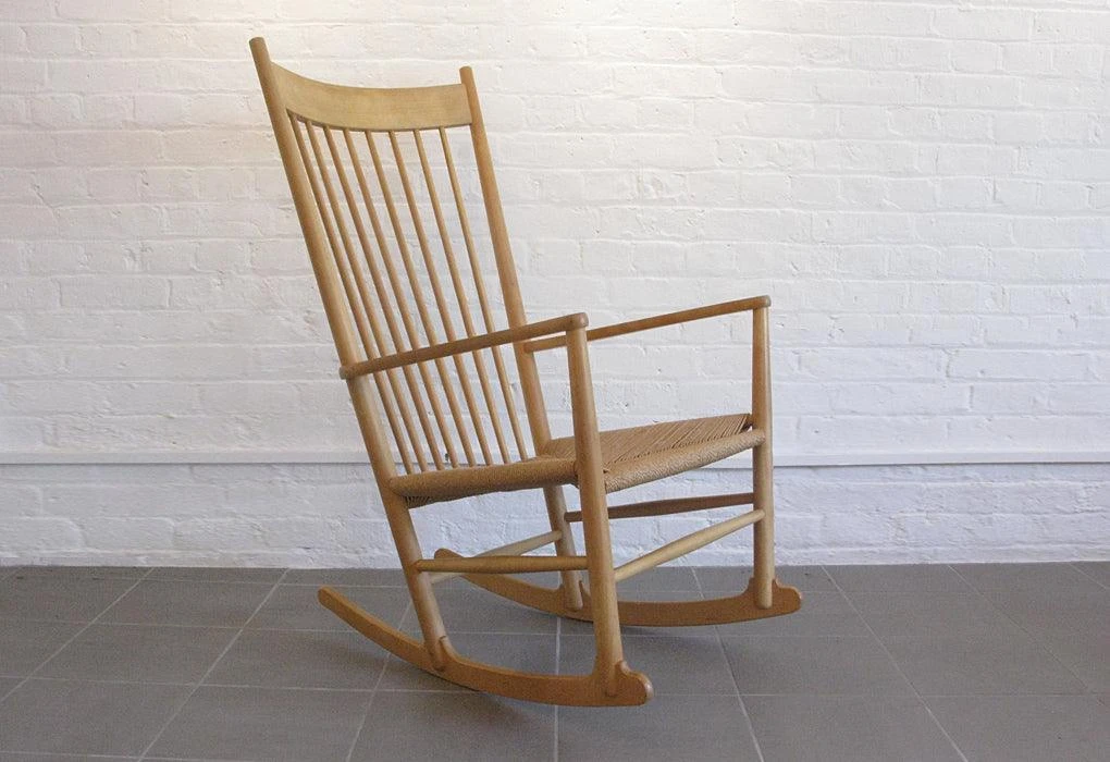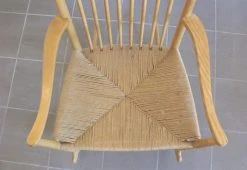 The J16 Rocking chair was designed in 1944 and references early Windsor rocking chairs made in Britain from the 1750’s. The design is reconfigured into a more generous contemporary scale and with ergonomic considerations. The high back creates an elegant presence whilst maintaining a timeless quality. Wegner’s masterful attention to construction and detailing is clearly evident throughout the chair’s frame. The woven paper yarn seat provides a rustic and handcrafted feel to the design.
