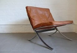 The stainless steel structure echoes the work of fellow Danes, Poul Kjaerholm and Fabricius-Kastholm. Ostergaard’s design is beautifully engineered and through the use of chromed steel straps to support the cushions he achieves a harmonious completeness to the chair. The aniline leather cushions are down-filled offering a high level of comfort, whilst providing a less structured element to the strict, minimalist frame. The whole combines to create an extremely high quality piece of furniture.