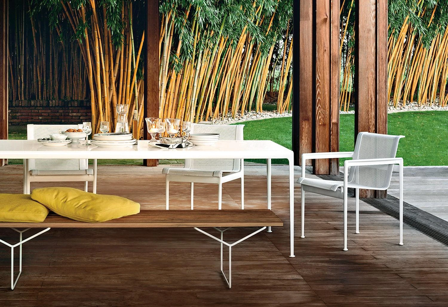 The 1966 collection was designed at the request of Florence Knoll, who wanted well-designed outdoor furniture that would withstand the corrosive salt air at her home in Florida. Through the years, the 1966 Collection has earned a special place in the world of outdoor furniture and is considered a classic design for the garden.