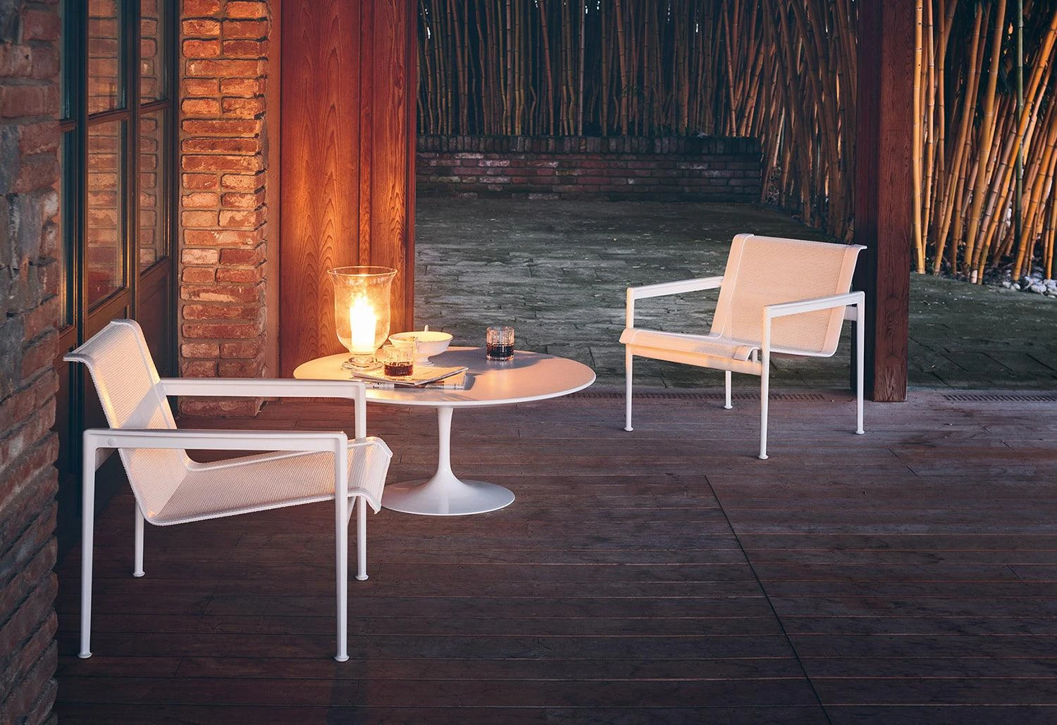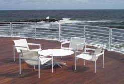 The 1966 collection was designed at the request of Florence Knoll, who wanted well-designed outdoor furnishings that would withstand the corrosive salt air at her home in Florida. Through the years, the 1966 Collection has earned a special place in the world of outdoor furniture and is considered a classic design for the garden.