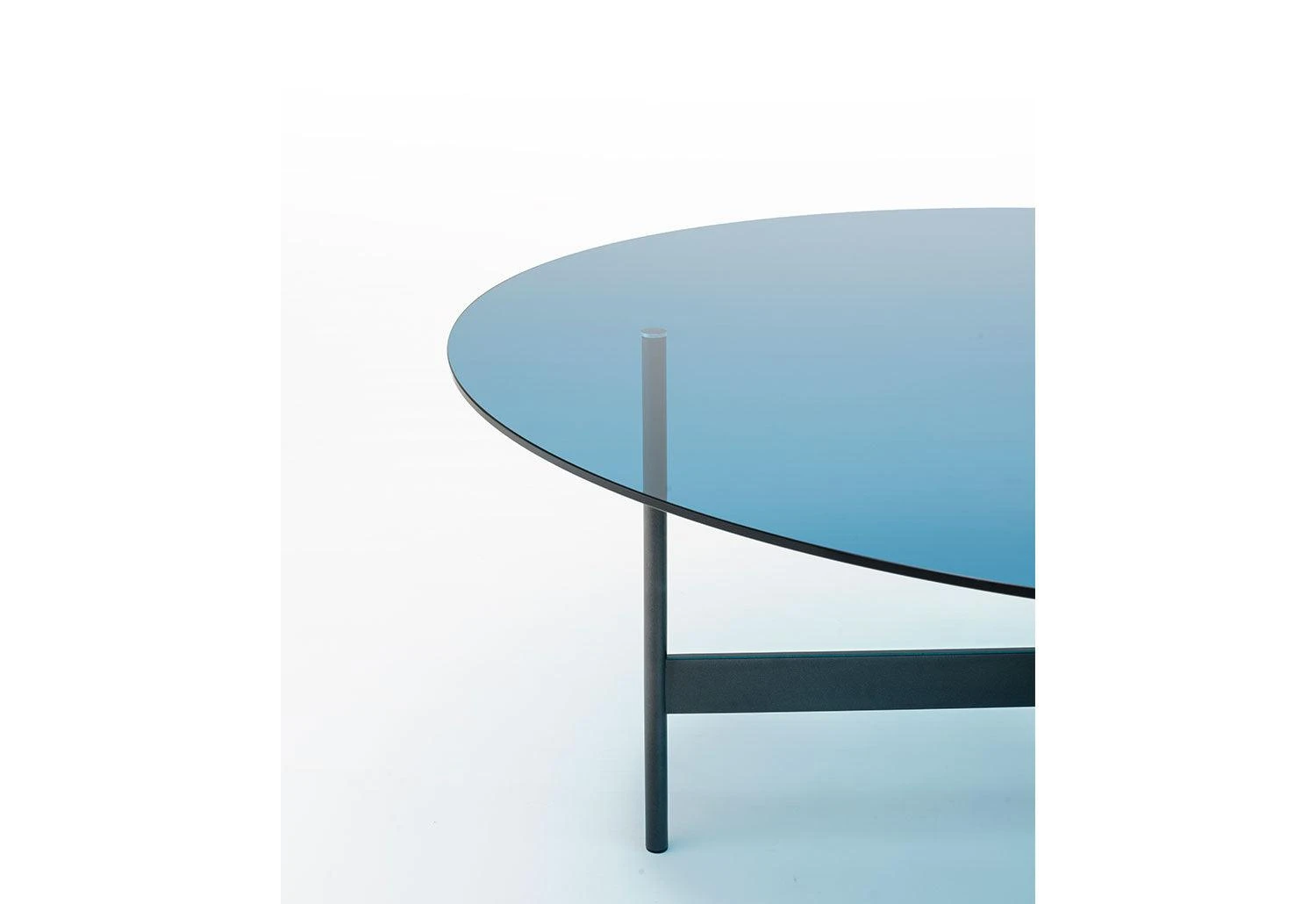 The Notes outdoor table has a tabletop in smoked coloured glass, blue coloured glass or granite. An indoor version of the Notes table is also available, please see it here.
