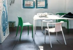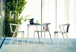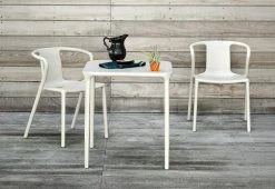 The Air outdoor armchair has been in production since 2006. This deceptively simple chair is stackable, available in a range of colours and suitable for indoor and outdoor use.