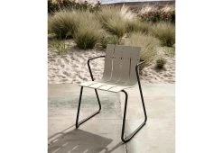 The original Ocean Chair consisted of a number of wooden slats supported by a steel frame. The design has remained largely the same, although now features plastic slats and is slightly larger to accommodate modern proportions.