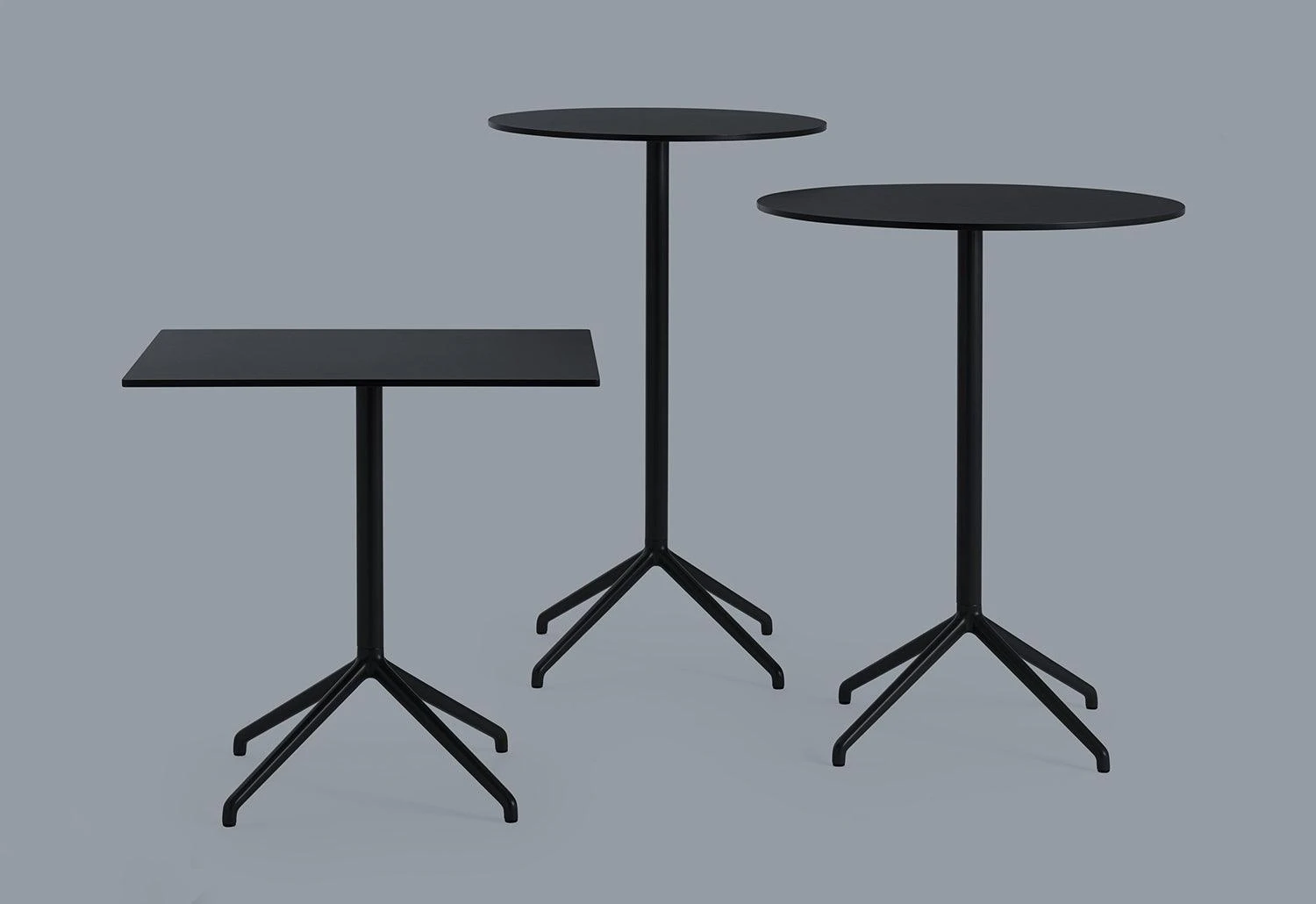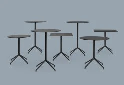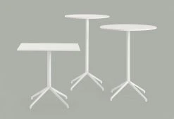 The Still Café Table is designed for function with a minimal aesthetic. Sitting on a four-legged base, it is paired with the angled edges of its square tabletop or the rounded curves of its round tabletop.