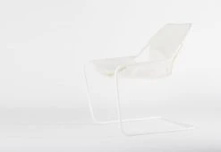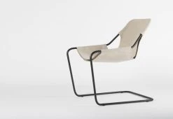 Made from a single bent steel bar with 100% Canvas from Les Vosges, France, the armchair exudes an elegant lightness and amazing comfort.