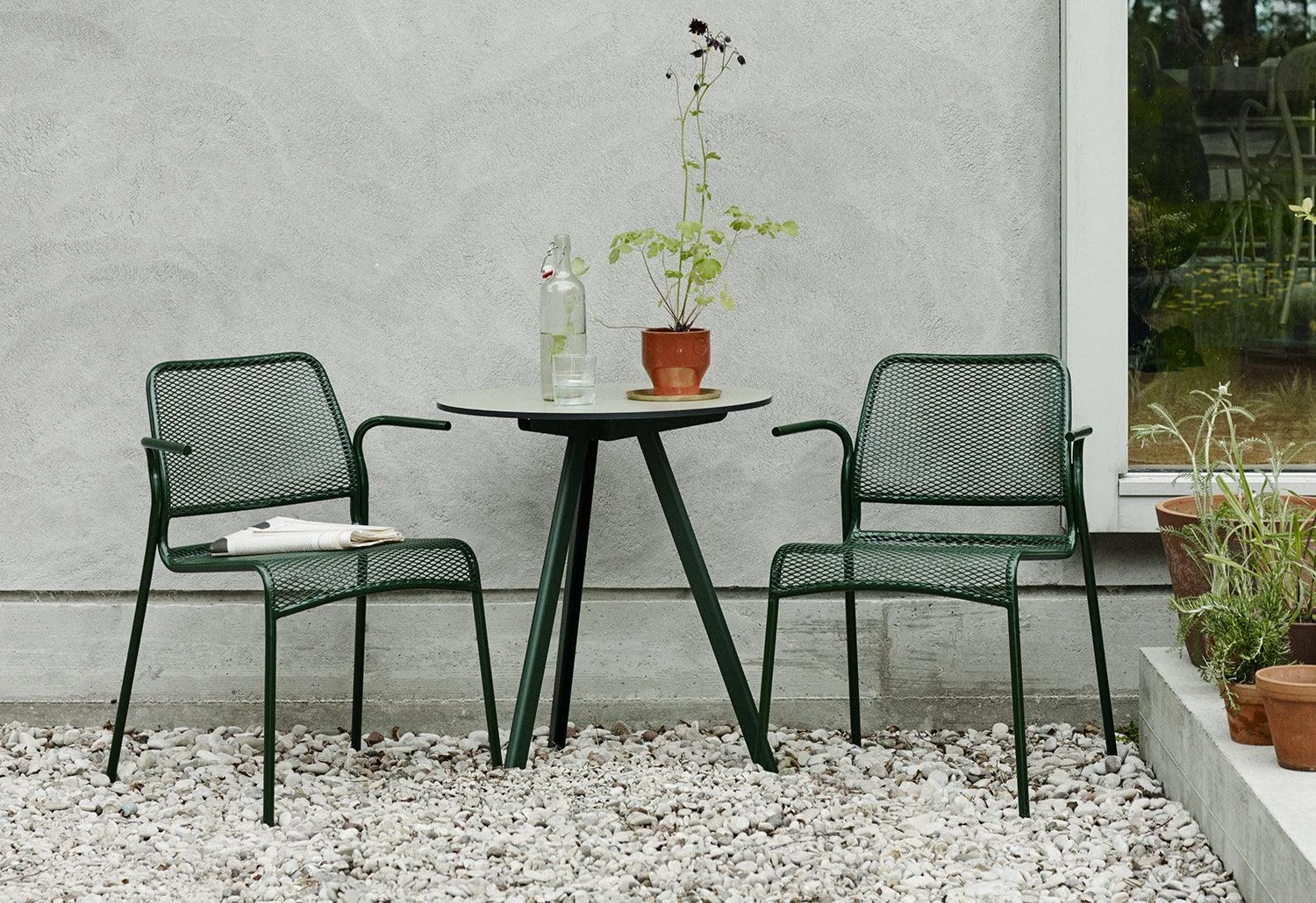 Designed by Mia Lagerman, Mira has a form reminiscent of traditional steel garden furniture while remaining resolutely contemporary. An airy design that will sit happily in a range of contexts.
