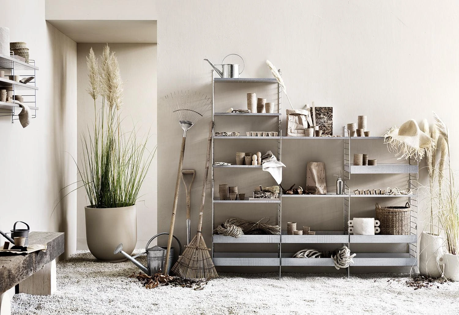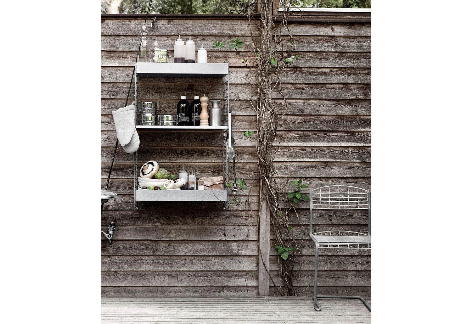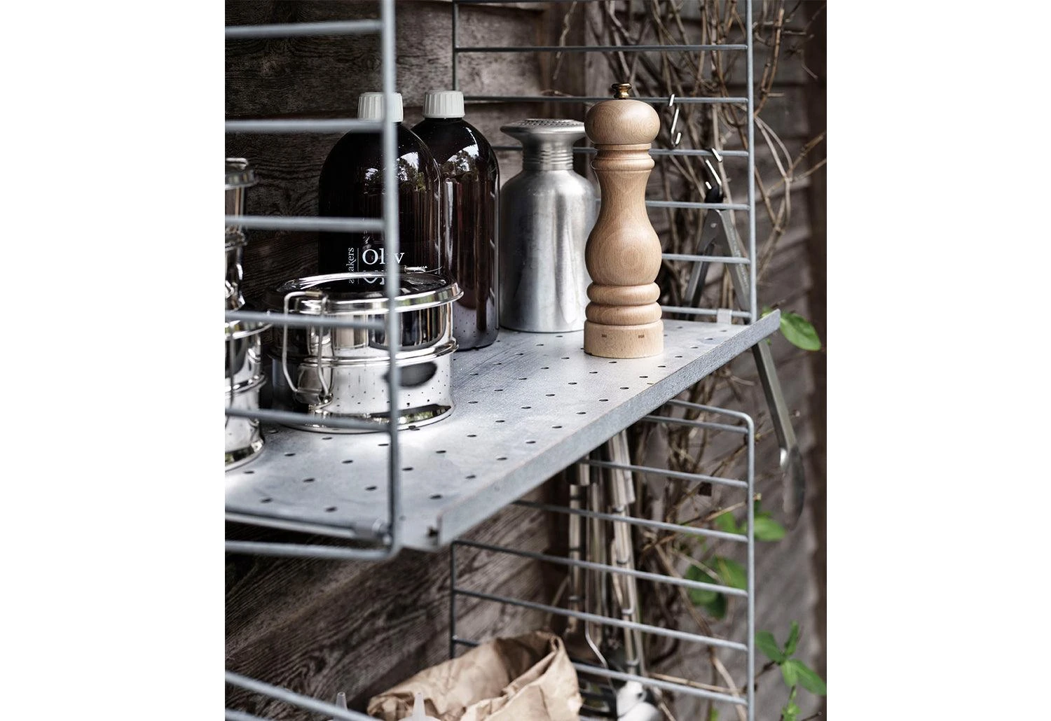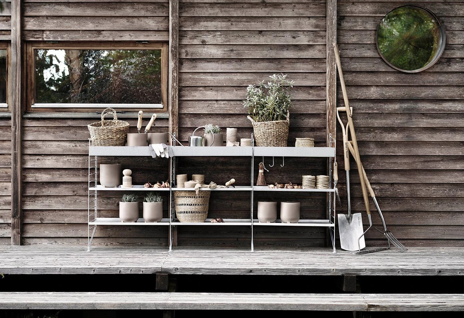 The iconic String System is now available in an outdoor version. Designed and manufactured in Sweden, the outdoor String System is designed for rough Scandinavian weather and can withstand any weather. Store your garden tools, pots or other objects while making your garden look modern and sophisticated. See the shelves evolve splendidly as it develops a beautiful patina over time.
