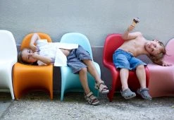 Identical to the regular model in terms of material and shape, the Panton Junior is approximately 25% smaller and available in six different colours. This makes it an ideal chair for children of pre-school and primary school age.