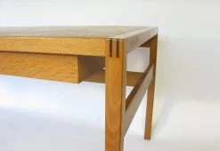 The design for the solid and veneered oak frame, top and drawers is understated, though the arrangement drawers in purposefully separated creating a graphic front elevation. The drawers are suspended through discrete steel runners and extend the full depth of the top.