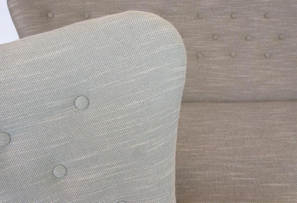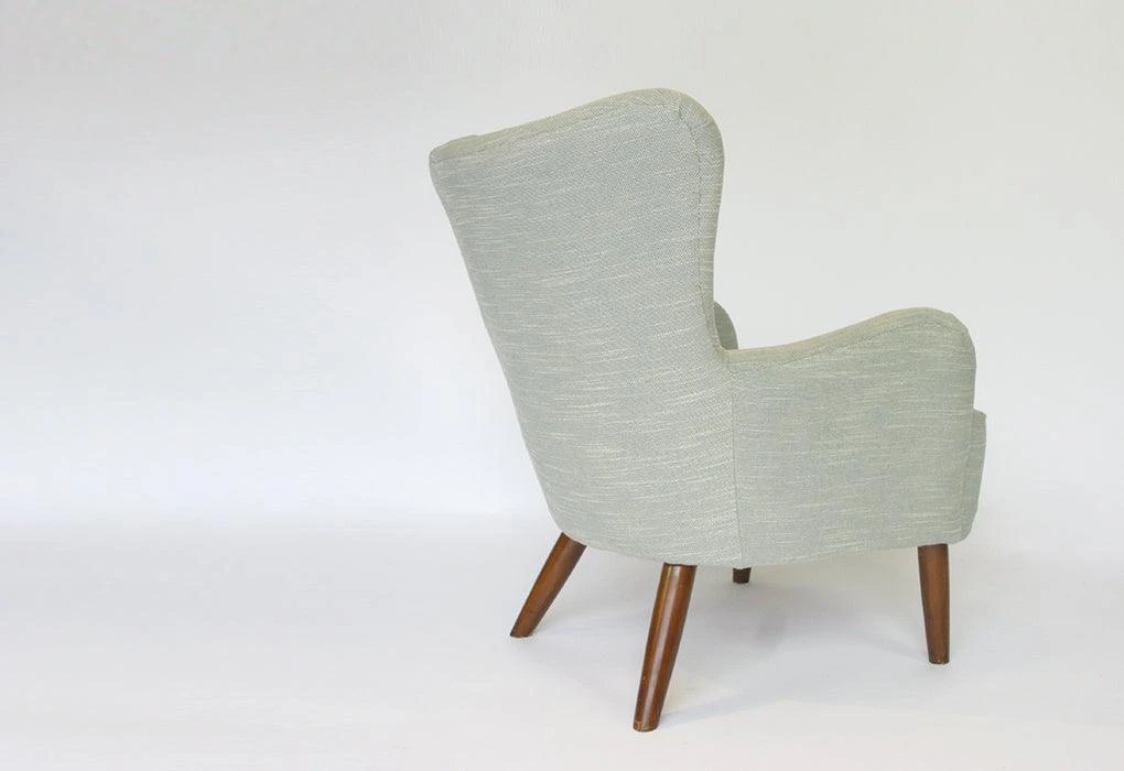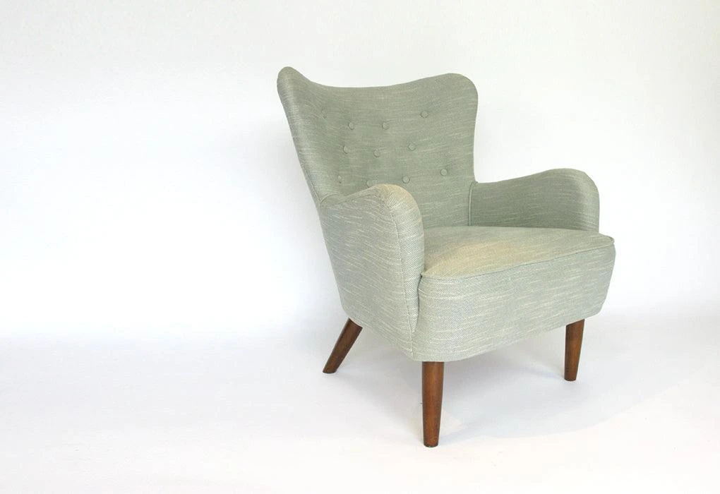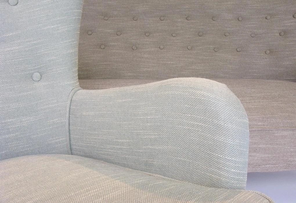 The innovative use of a steel-rod structure provided for a sinuous and visually lightweight design. The organic form reflects fine art movements from the period, and the work of Jean Arp and Henry Moore. The furniture was progressive both in construction and outline, and the design of the DA series was in stark contrast with the bulky and heavy forms available in late 1940s and early 1950’s. Race’s winged and buttoned back and flowing lines were echoed in Northern Europe in the work of Finn Juhl and was later the organic shapes became a more accepted typography in upholstered seating.