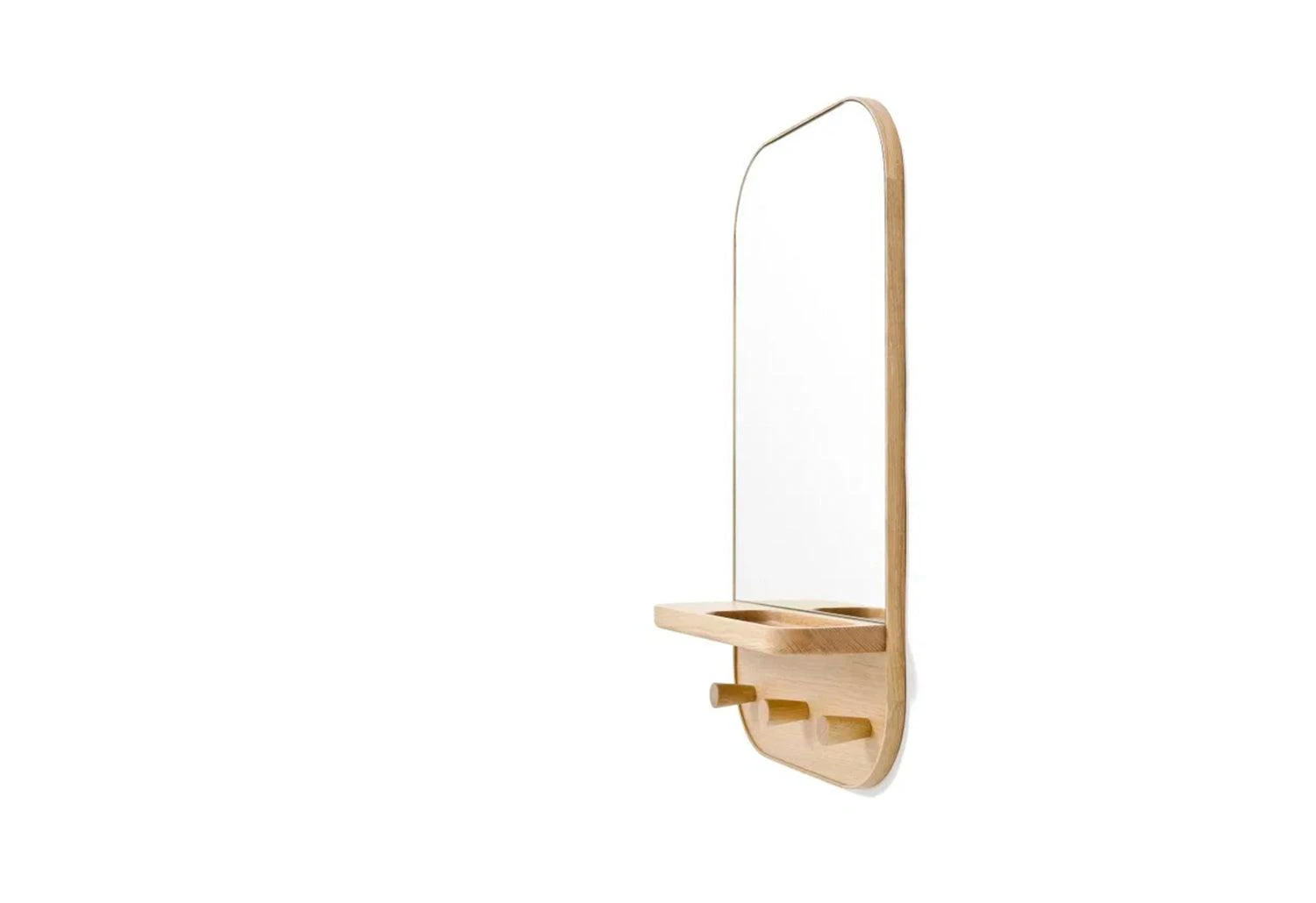 The Silent Butler Mirror is a multifunctional piece, featuring a wall mirror with shelf and three hooks below. Ideally situated in a hallway, it’s perfectly designed to store and organise everything you might need as you leave the house, from a jacket to a set of keys.Â
